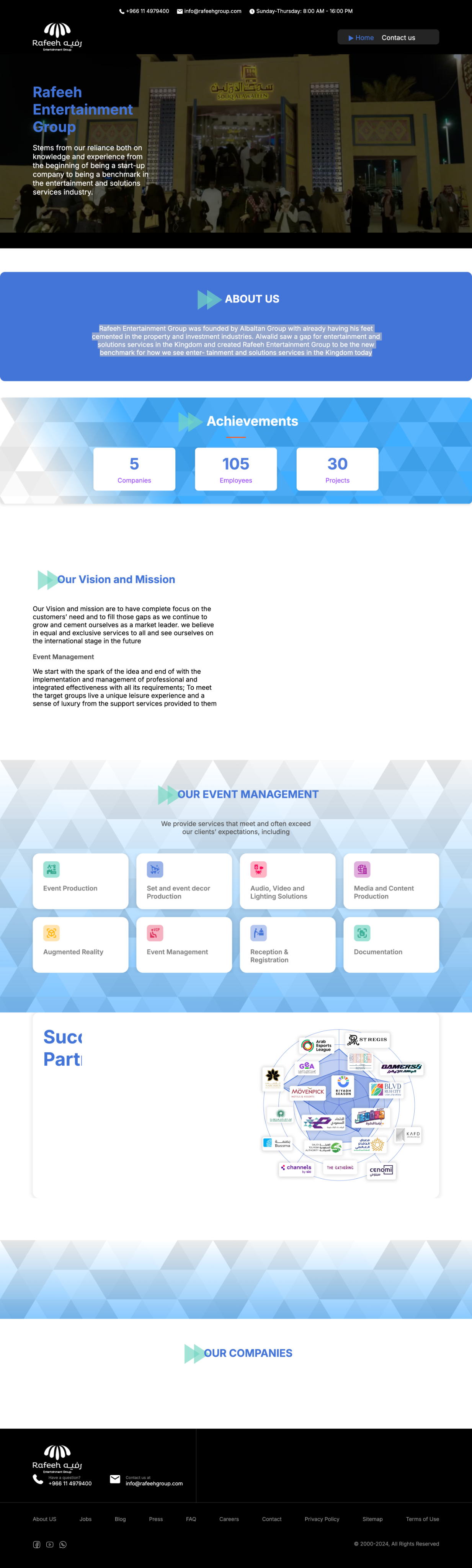 رأى الأستاذ الوليد البلطان فجوة في سوق الترفيه والخدمات المتكاملة داخل المملكة، فأنشأ Rafeeh Entertainment Group لتكون المعيار الجديد في عالم الترفيه والخدمات المبتكرة في المملكة العربية السعودية.