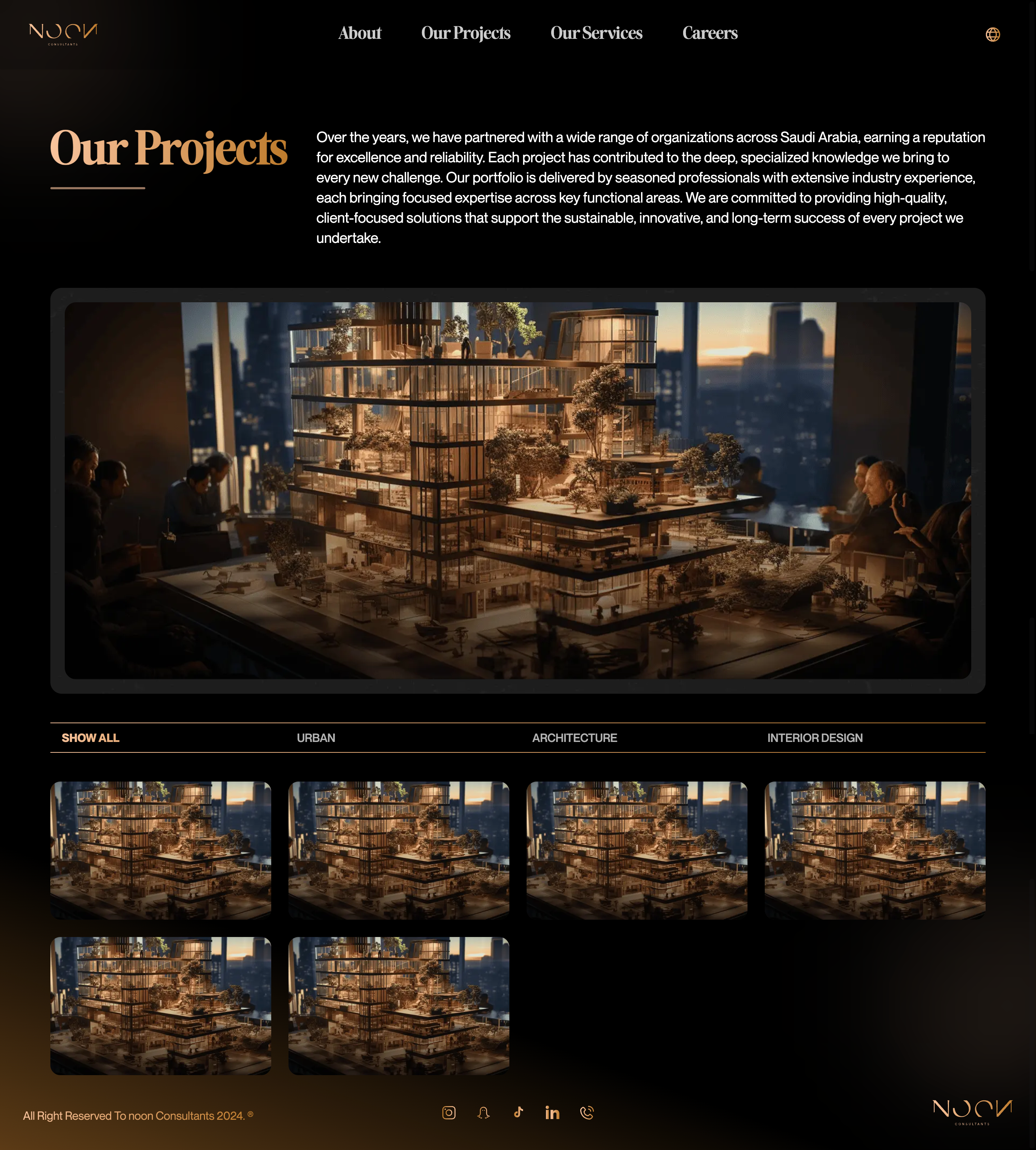 شركة نون متخصصة في التصميمات الهندسية والمعمارية الحديثة. تم تطوير الموقع الإلكتروني لعرض مشاريعهم المبتكرة مع إبراز التزامهم بالمعايير البيئية والاجتماعية والاقتصادية. بواجهة عصرية واحترافية، يعكس الموقع خبرة نون ويؤكد مكانتها كشركة رائدة في مجال العمارة المستدامة بالمملكة.